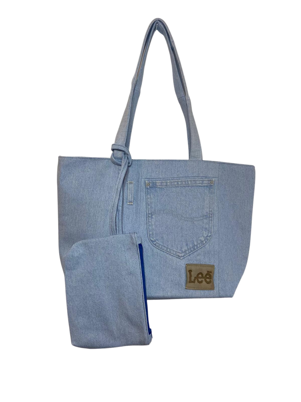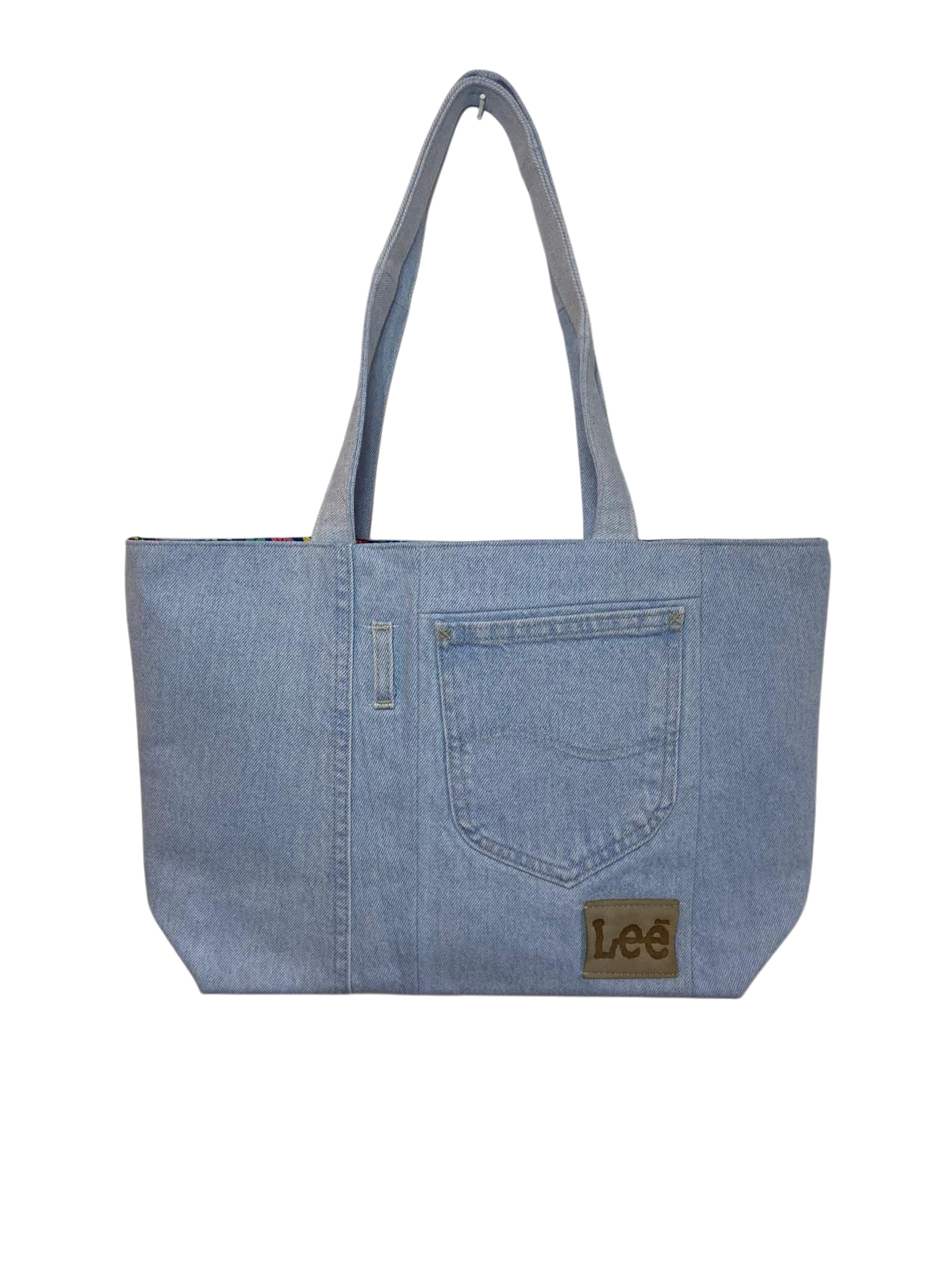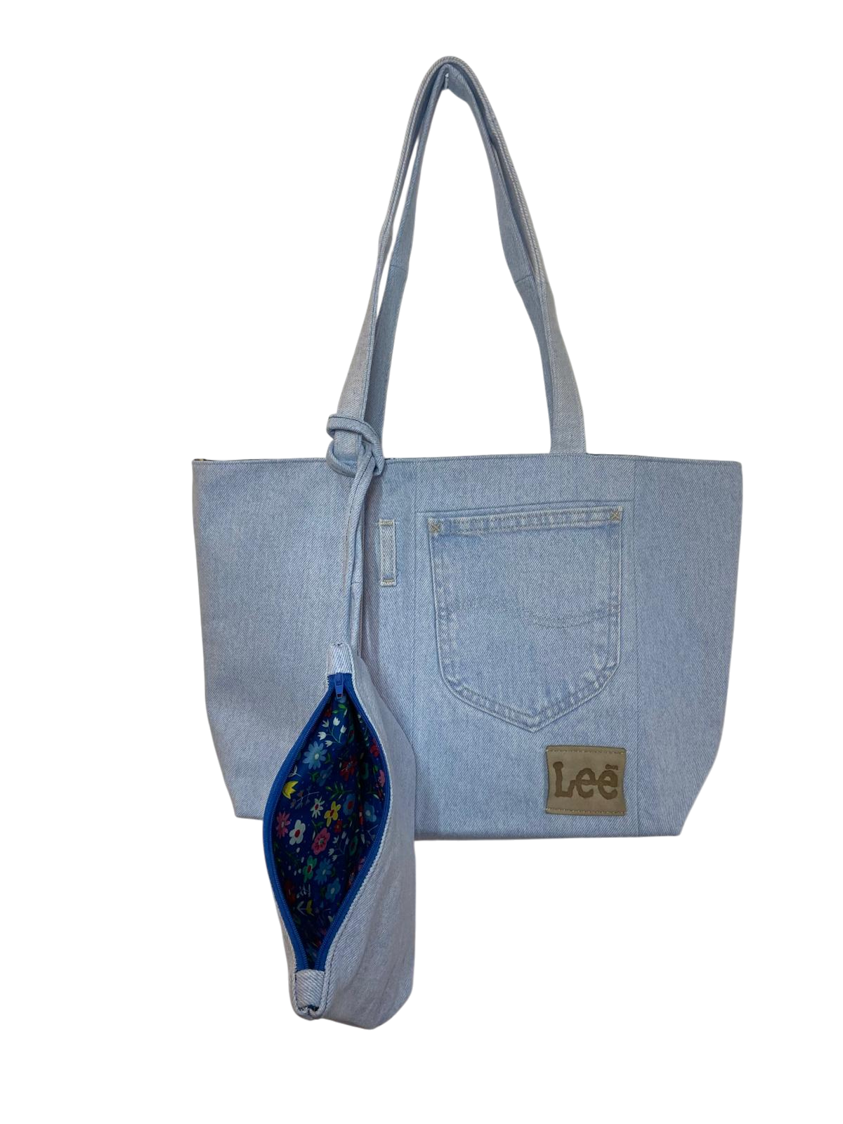 Bring a fresh twist to classic denim with our Upcycled Lee Denim Bag, handmade from authentic, pre-loved Lee jeans in a soft light-wash finish. This denim bag is one of a kind, featuring original Lee pocket details that tell the story of the denim’s past life.